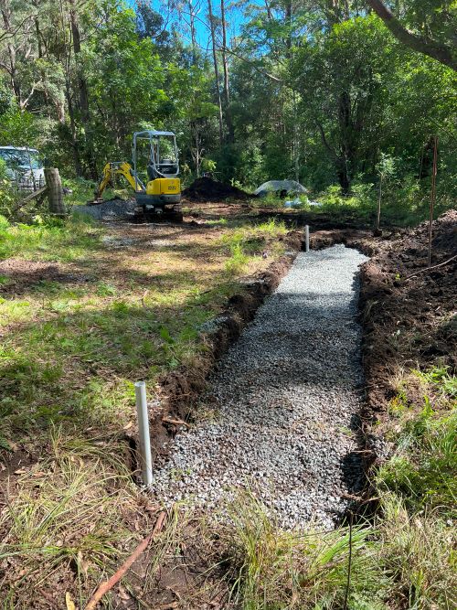 As groundwater accumulates in the soil, it naturally flows into the gravel trench, enters the perforated pipe, and is directed away from problematic zones to a designated safe discharge location. This system functions efficiently beneath ground level without requiring visible grates or channels, which is particularly beneficial in clay-heavy soils prevalent in Wollongong and the surrounding Illawarra region.